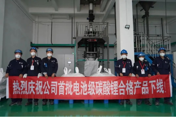 首批电池级碳酸锂合格产品顺利下线