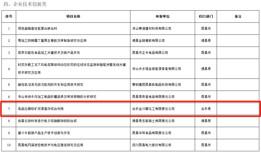 09金宝慱亚洲体育矿业集团金川公司《低品位磷粉矿资源高效综合利用》项目申报凉山州科技计划成功获批立项!
